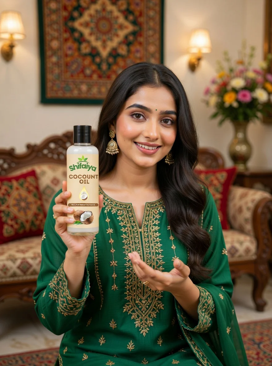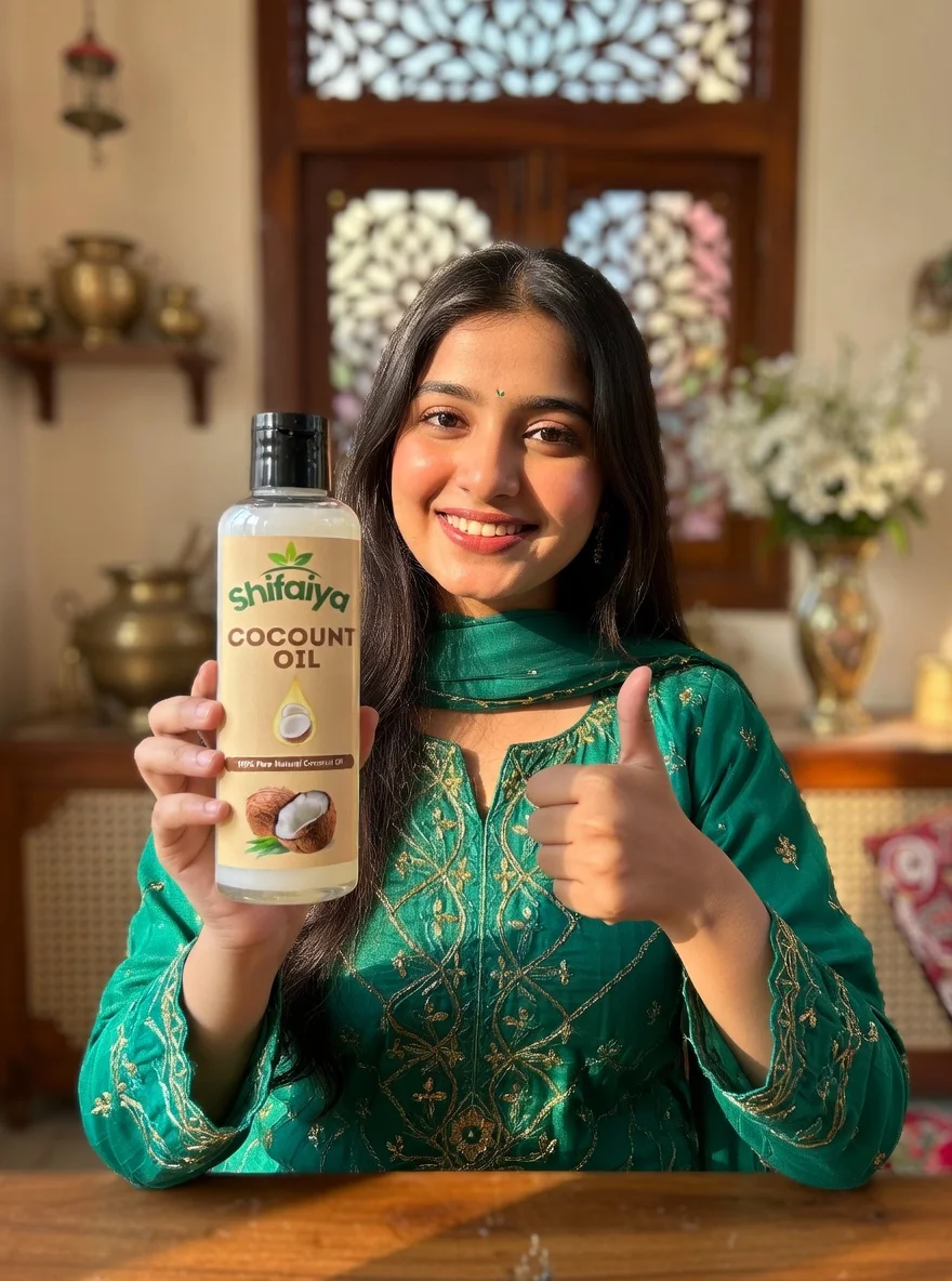 Shifaiya Care 100% Pure Cold Pressed Virgin Coconut Oil is extracted from fresh coconuts using a gentle cold-pressed process that helps preserve its natural vitamins, antioxidants, and essential fatty acids. This nutrient-rich oil deeply nourishes the scalp, strengthens hair roots, and helps improve hair softness, smoothness, and natural shine.