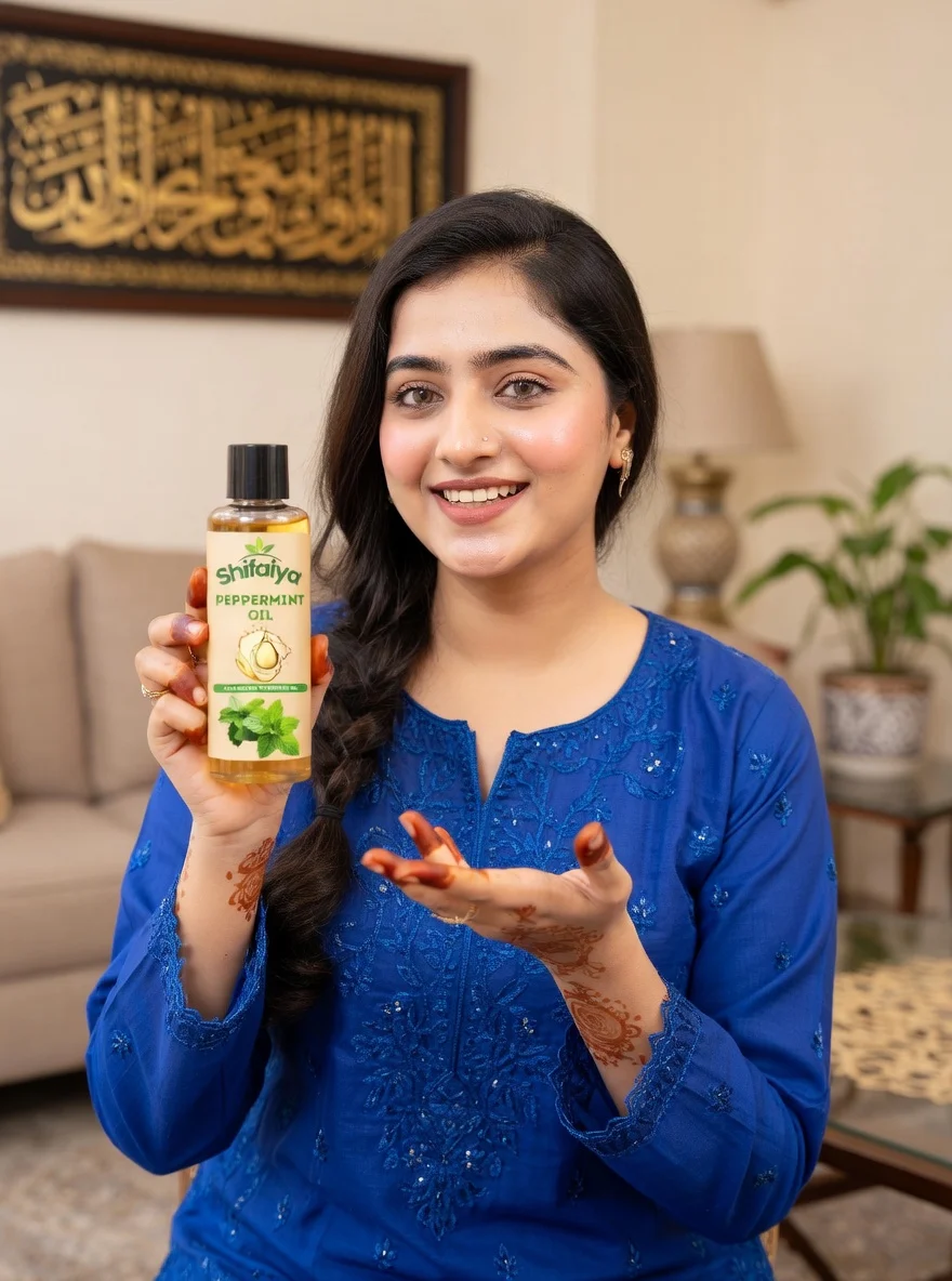 Shifaiya Peppermint Oil helps provide natural freshness, scalp care, and soothing body comfort.