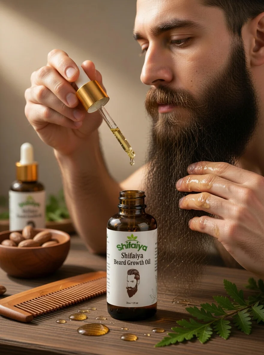 Shifaiya Beard Growth Oil is a premium natural beard care oil specially formulated to nourish beard hair, soften rough beard texture, and support healthy beard growth. Made with carefully selected natural oils and herbal ingredients, it helps strengthen beard roots, improve beard thickness, and promote a fuller and healthier-looking beard.