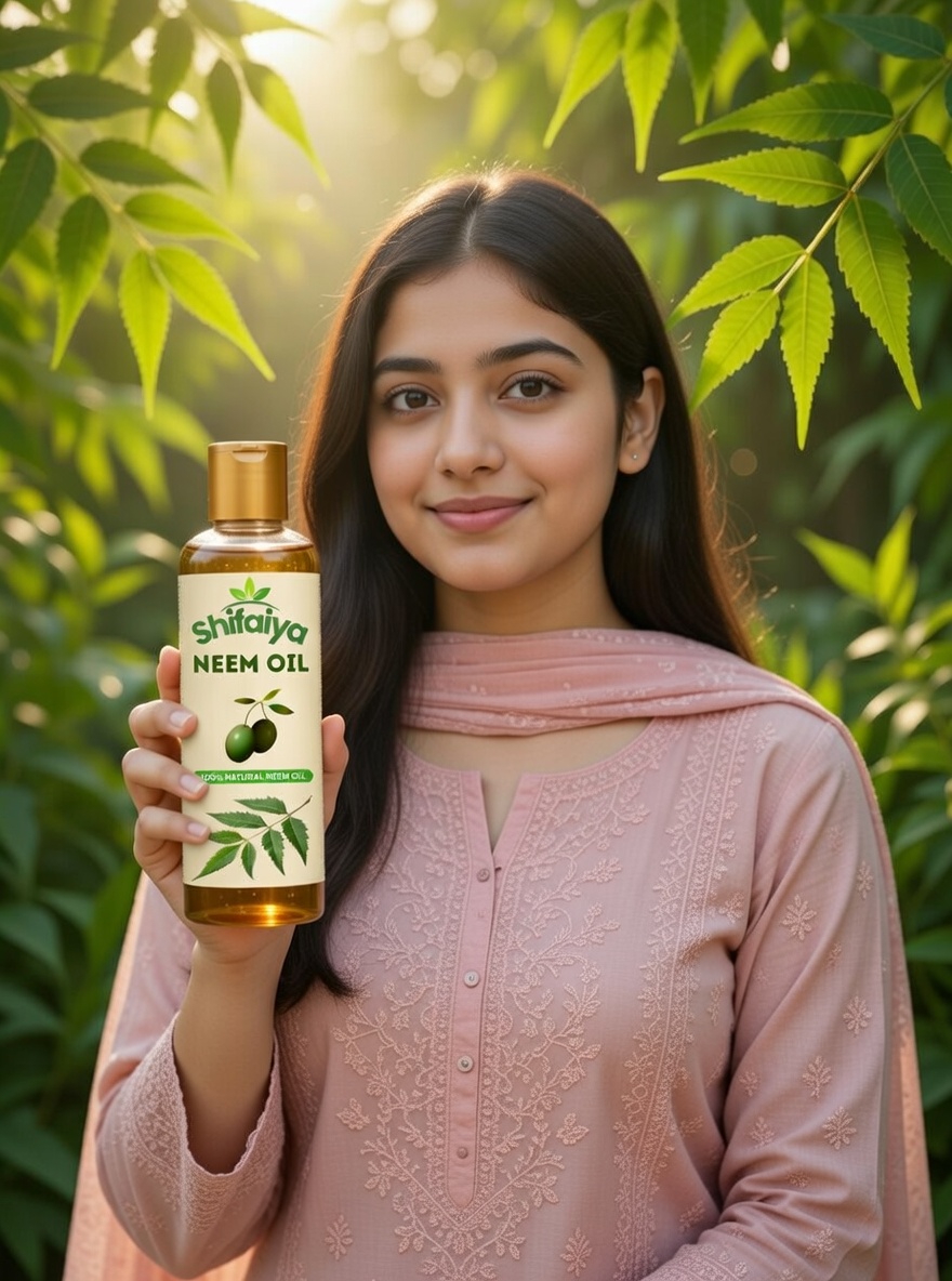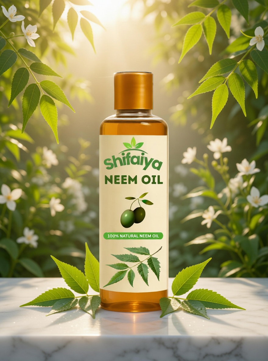 Shifaiya Neem Oil is a 100% pure, cold-pressed, unrefined oil extracted from premium neem seeds. The cold-press extraction process ensures that the natural nutrients and beneficial compounds of neem are preserved without the use of heat, chemicals, or artificial additives.