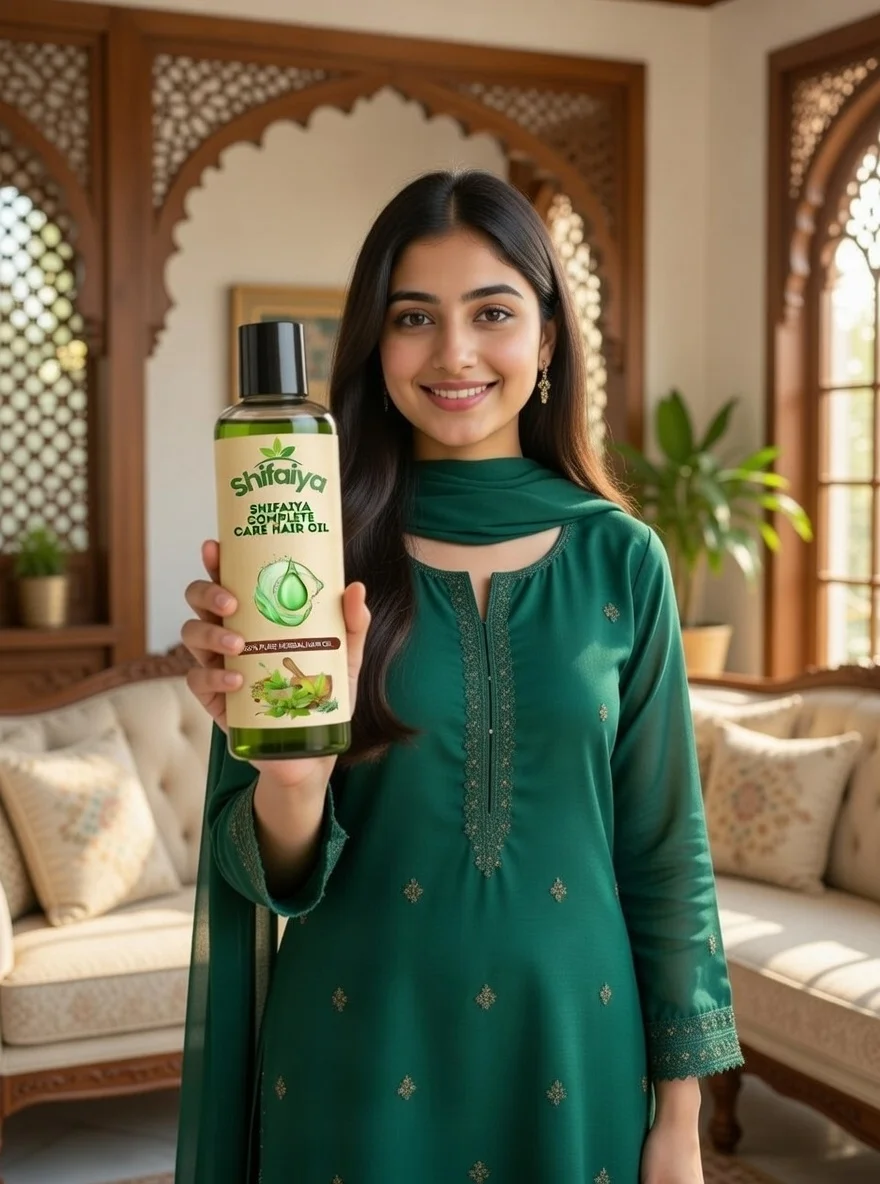 Shifaiya Complete Care Hair Oil is a premium herbal hair oil made with natural ingredients like Amla, Reetha, Shikakai, and nourishing oils. It helps maintain healthy, strong, soft, and shiny hair with regular use.